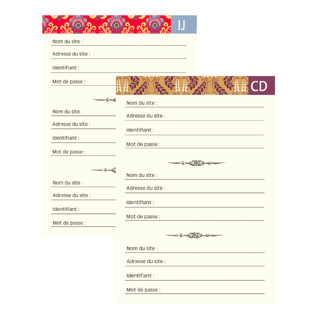 • 48 pages adaptées à la gestion des identifiants