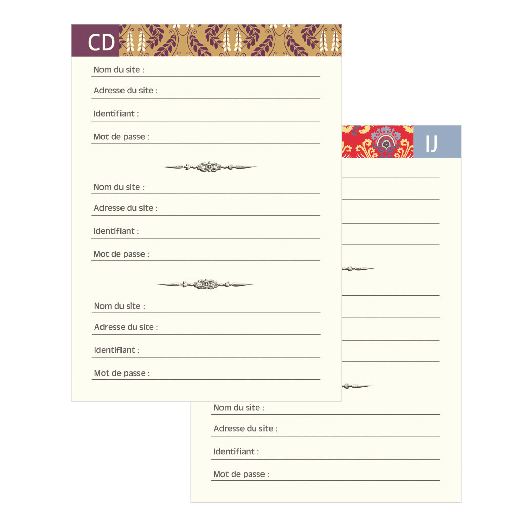 • 48 pages adaptées à la gestion des identifiants
