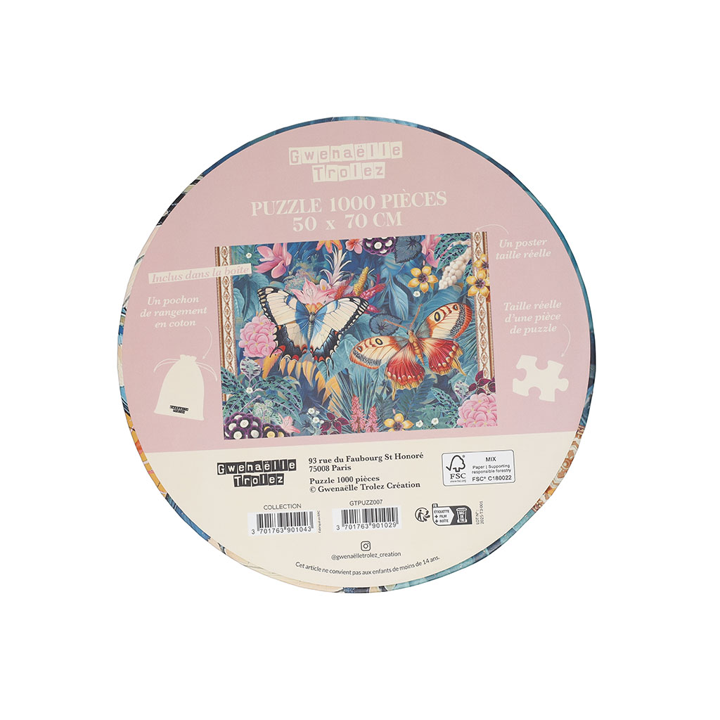 Plongez dans un univers illustré et poétique avec ce puzzle 1000 pièces signé Gwénaëlle Trolez. Présenté dans une élégante boîte ronde, c’est un bel objet à offrir, collectionner ou détourner.